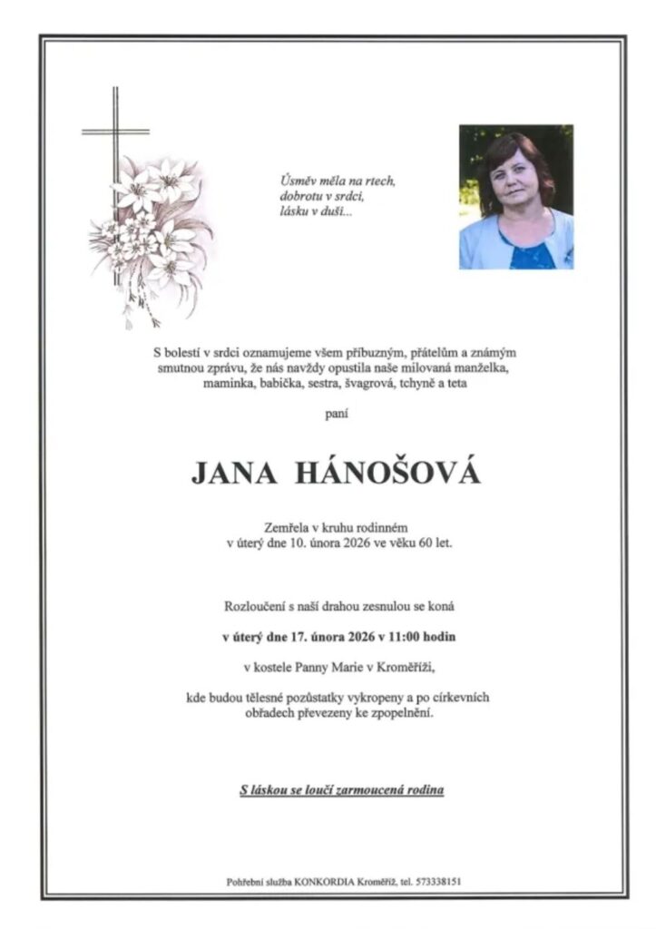 Dne 10. 2. 2026 zemřela Jana Hánošová, která byla dlouholetou účetní naší TJ, mnohdy doslova nepostradatelnou silou stojící za tím, aby ekonomické fungování naší TJ bylo desítky let účetně v pořádku. Díky ní prošla TJ i poměrně složitými obdobími bez zásadnějšího účetního problému.